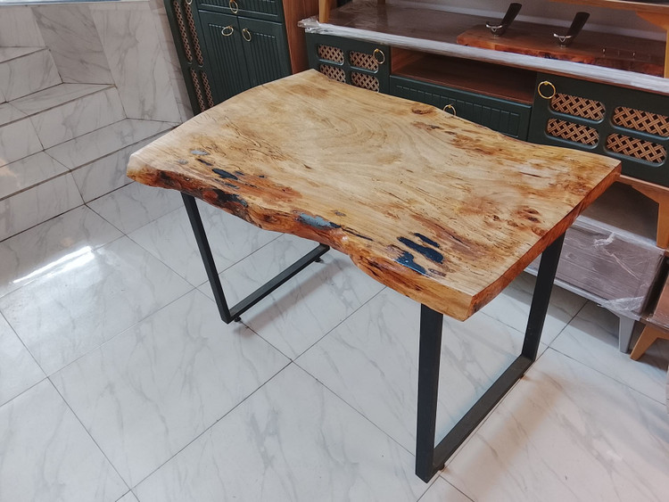 میز ناهارخوری با چوب جنگلی 4نفره با پایه فلزی رنگ کوره ای
